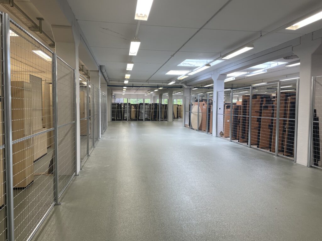 Wir erhalten sehr viele Anfragen bezüglich kleiner Lagerflächen. Bis zum heutigen Tag konnten wir in diesem Segment keine Flächen anbieten. Inzwischen wurden die ehemaligen Produktionsflächen im Gebäude 3 im 1. Obergeschoss als Lager umgebaut. Hier können kleinere Lager von 100 – 500 qm angemietet werden. Ebenso stehen moderne Archivräume mit Rolltegalen zur Einlagerung von Akten zur Verfügung. Die Andienung erfolgt über ein ebenerdiges Rolltor und einen Lastenaufzug. Die flexible Laufzeit und der 24 stündige Zugang ins Gebäude ist bei unseren Mietern sehr gefragt.