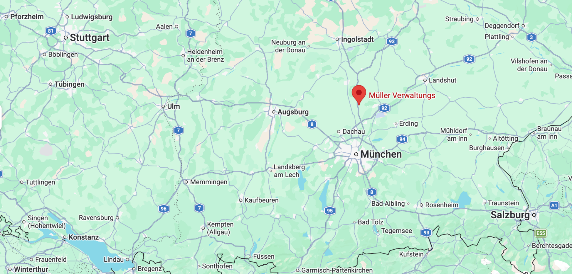 Der Firmenstandort in Kranzberg ist nur 10 min von den oben aufgeführten Orten entfernt. Die Mieten sind noch etwas moderater und der Gewerbepark liegt direkt an der A9 zwischen München und Ingolstadt.